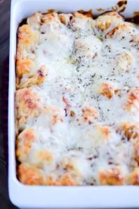- Add chicken and spread cheese on top of sauce and chicken genourously.
