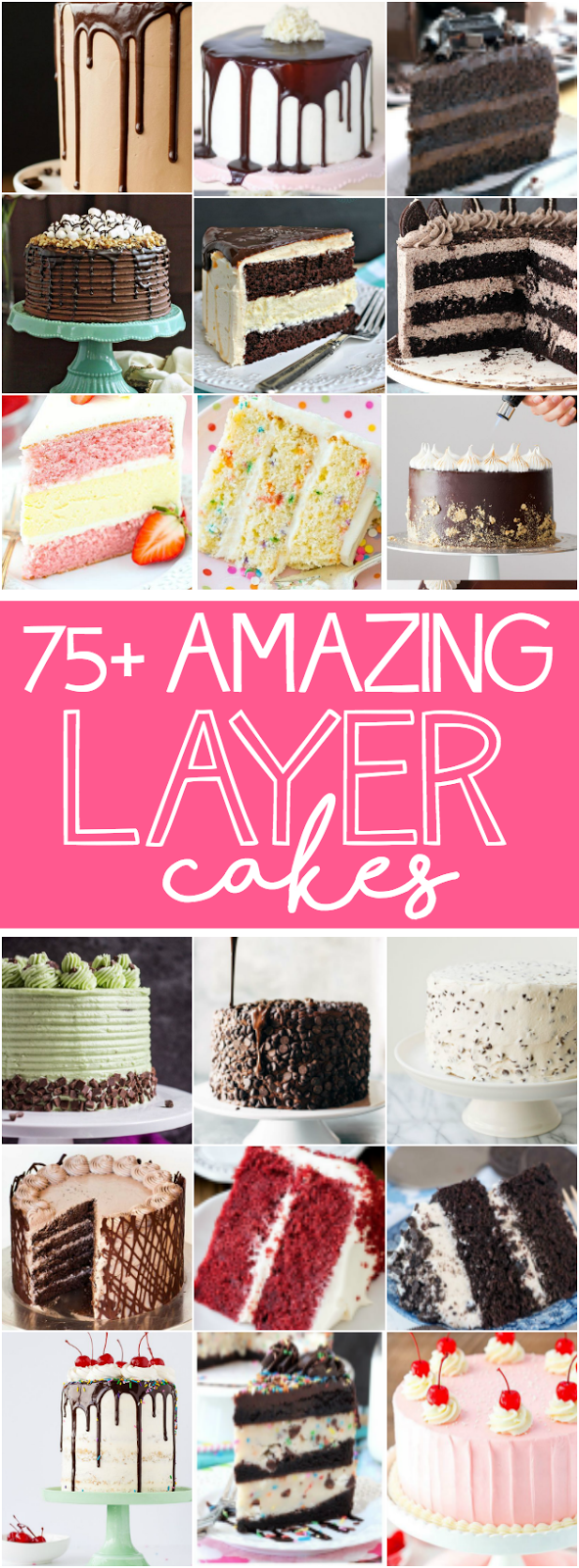 75+ Amazing Layer Cakes including Cherry Almond Cake, Mocha Chocolate Cake, Mudslide Cake, Peanut Butter Cup Layer Cake, and Banana Pudding Cake!