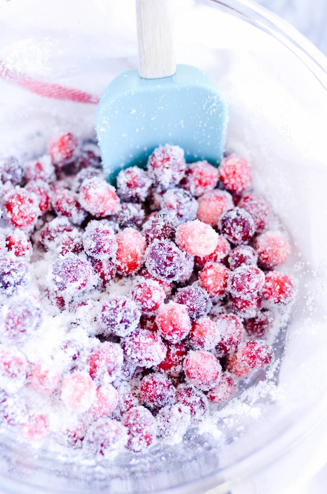 Sprinkle the remaining sugar over the cranberries and gently toss to coat.