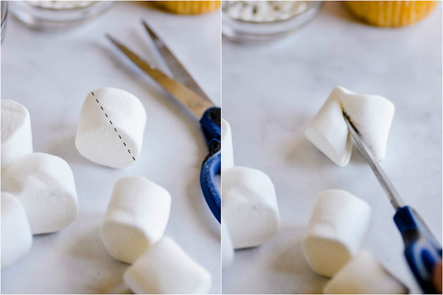 - Be sure to cut the marshmallows on a diagonal to create the right shape for bunny ears.