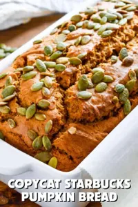 This Better than Starbucks Pumpkin Bread a healthier copycat version of the Starbucks iconic pumpkin loaf-- lower in calories and fat, and including nutritious ingredients like bananas, yogurt, and pumpkin seeds.